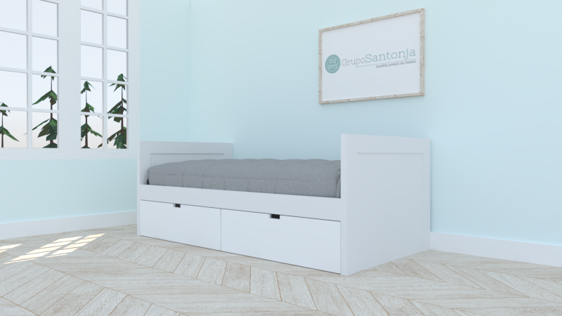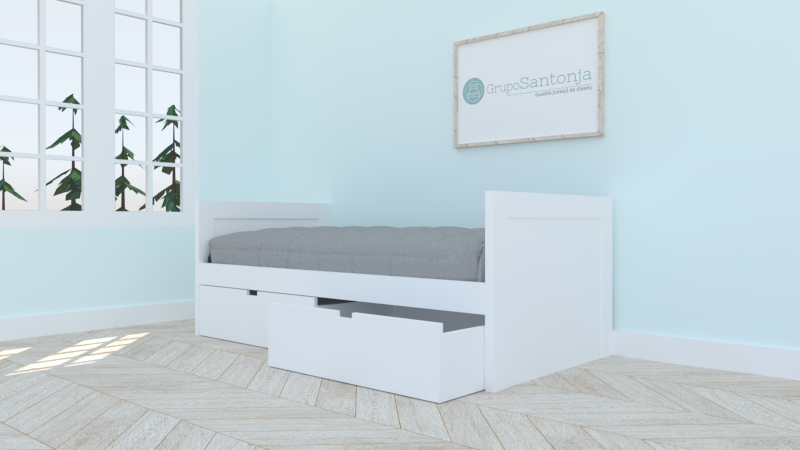 Cama de 90 x 190, y dos cajones con ruedas de 29 cm de alto.