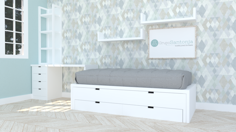 - Compacto tatami "Natalia"; Cama de 90 x 190, con somier inferior de 90 x 180 con capacidad para colchón de 16 cm de alto, y 2 cajones con guías de 18 cm de alto