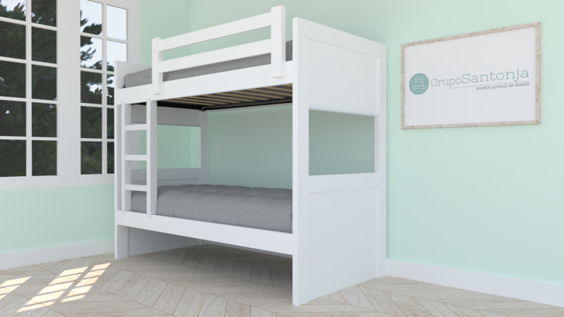 Fabricado en madera maciza D.M, lacado en blanco. Cabeceros de 4 cm.